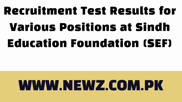 Sindh Education Foundation (SEF) Test Results Announced