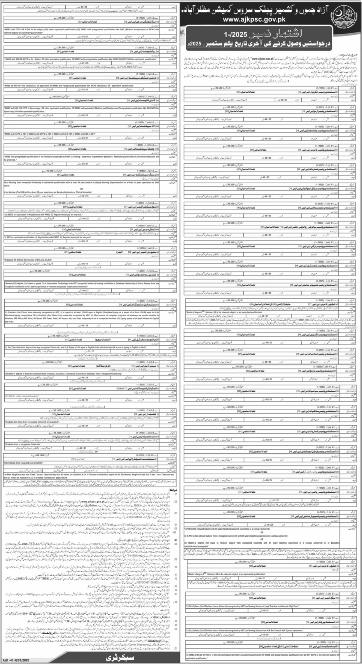 For complete details on all vacancies, eligibility criteria, and application procedures, candidates are strongly encouraged to read the official Advertisement No. 1/2025 on the AJKPSC website.