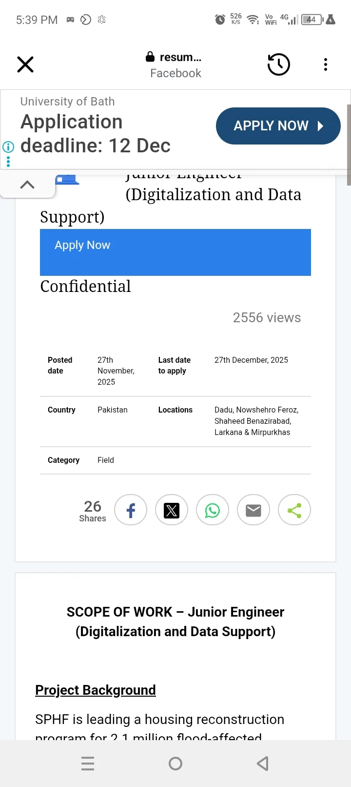 The Sindh People’s Housing for Flood Affectees (SPHF) is leading a massive housing reconstruction program in Sindh for 2.1 million flood-affected households. Catholic Relief Services (CRS) is supporting the recruitment process for specialized personnel to execute this vital project.