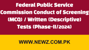 Federal Public Service Commission Conduct of Screening (MCQ) / Written (Descriptive) Tests (Phase-II/2024) July 21, 2024 …Complete Details