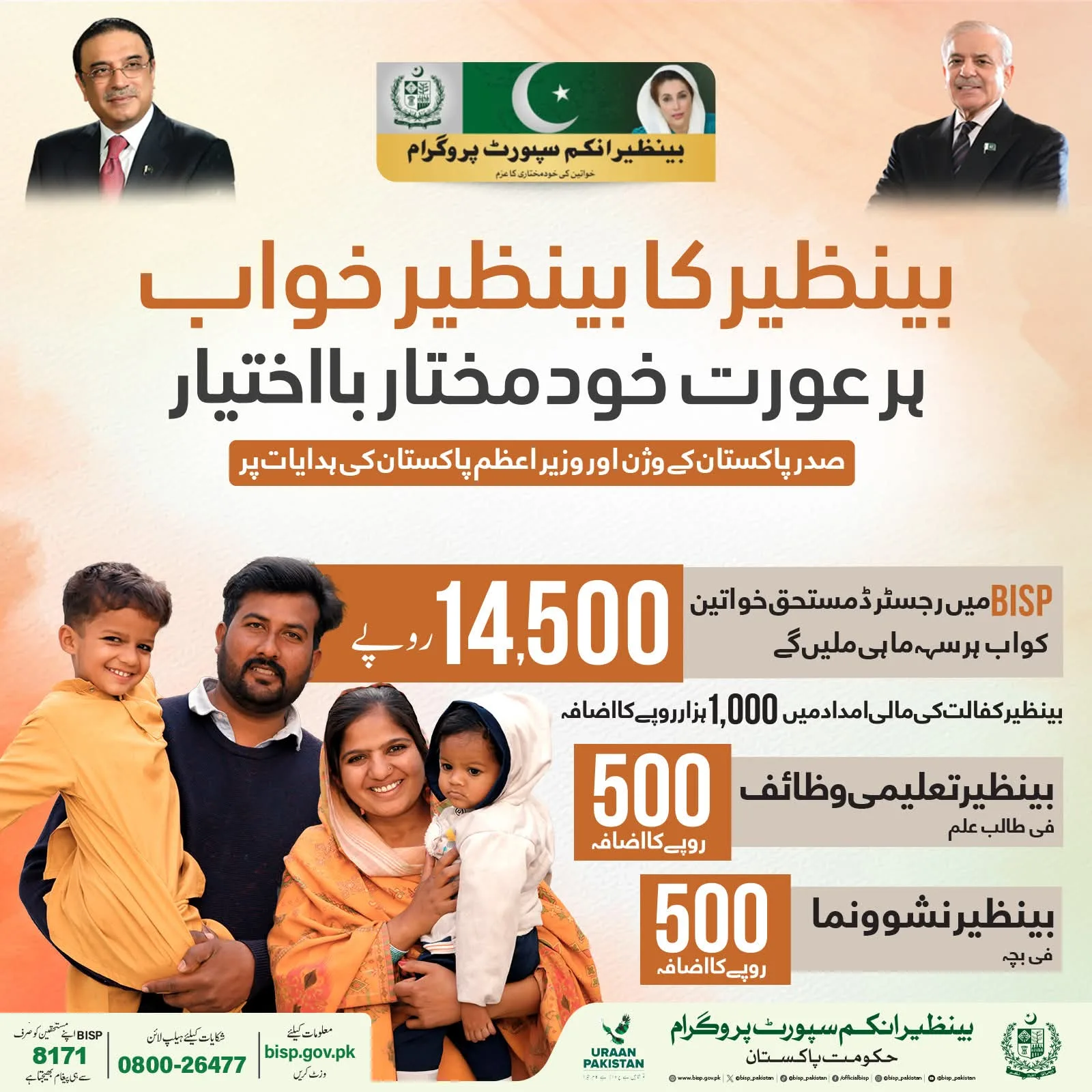 | Benazir Kafaalat | Rs. 13,500 | Rs. 14,500 | Rs. 1,000 |