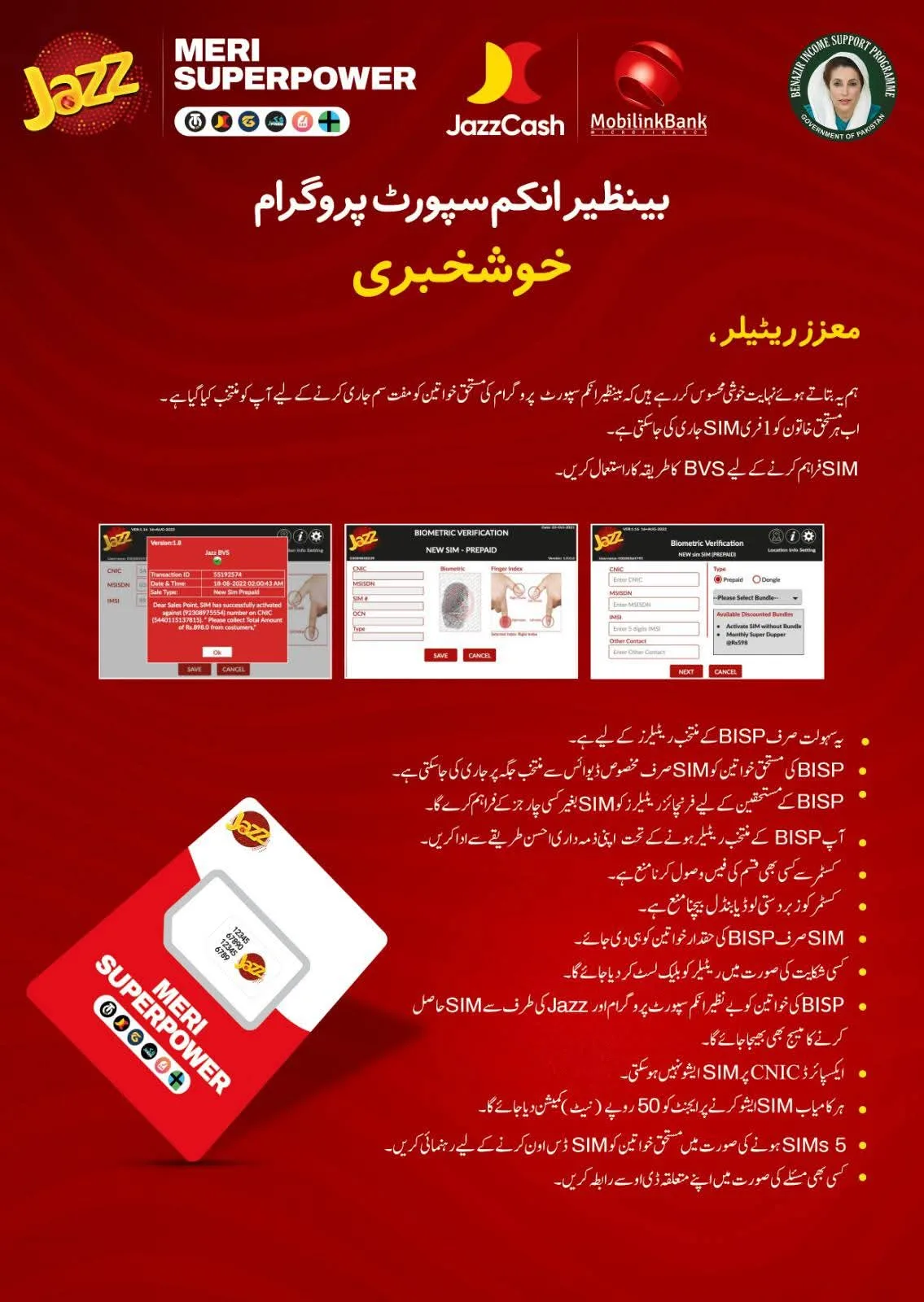 BISP SIM Distribution via Jazz/JazzCash: Benazir Income Support Program Empowerment (Updated Details)