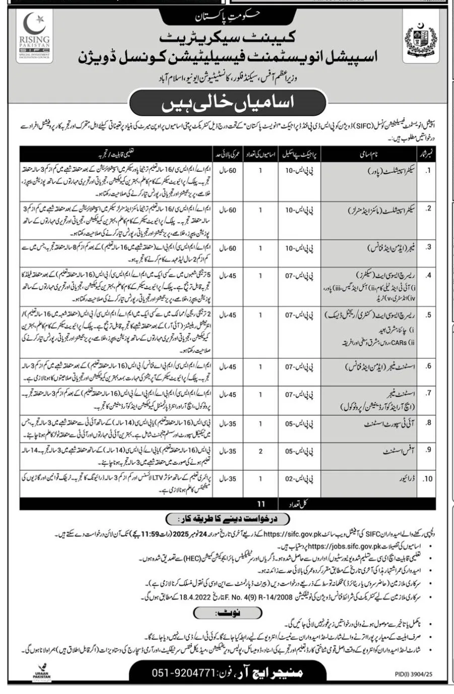The Cabinet Secretariat (SIFC Division) Jobs 2025 represent a significant opportunity for skilled professionals to join one of Pakistan’s most strategic government bodies working to accelerate national investment and development.