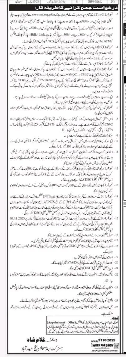 This recruitment drive offers a significant opportunity for individuals to secure a position within the judicial establishment of Sindh. Both male and female candidates are encouraged to apply. The application deadline for this recruitment is November 3, 2025.