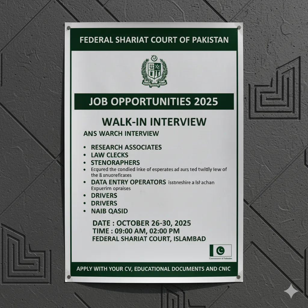 Federal Shariat Court of Pakistan Jobs 2025 – Walk-in Interview