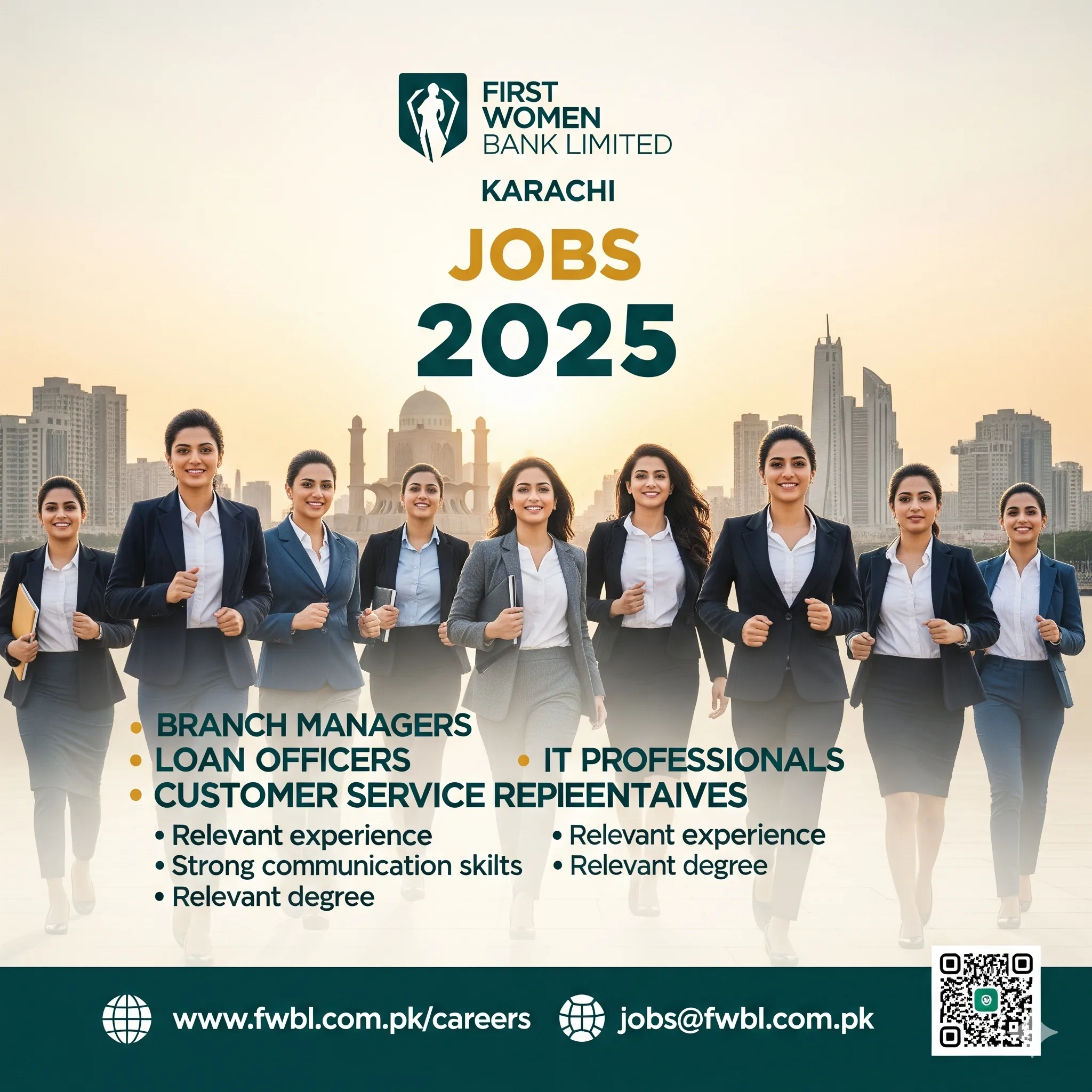 The First Women Bank Limited Career Opportunities 2025 are a perfect chance for skilled professionals to step into a promising career path. With positions in finance, IT, risk management, and leadership, FWBL jobs in Karachi 2025 cater to a wide range of talents. Candidates, especially women, should not miss this opportunity and apply before the closing date.