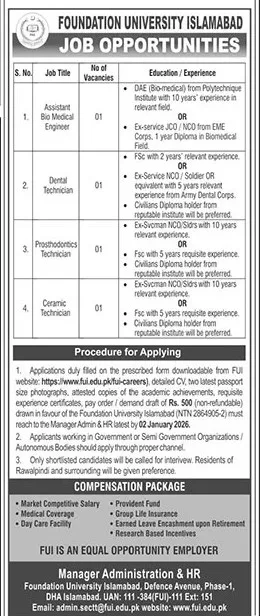 Eligible candidates are strongly encouraged to apply before the deadline and take the next step in their professional journey with Foundation University Islamabad.