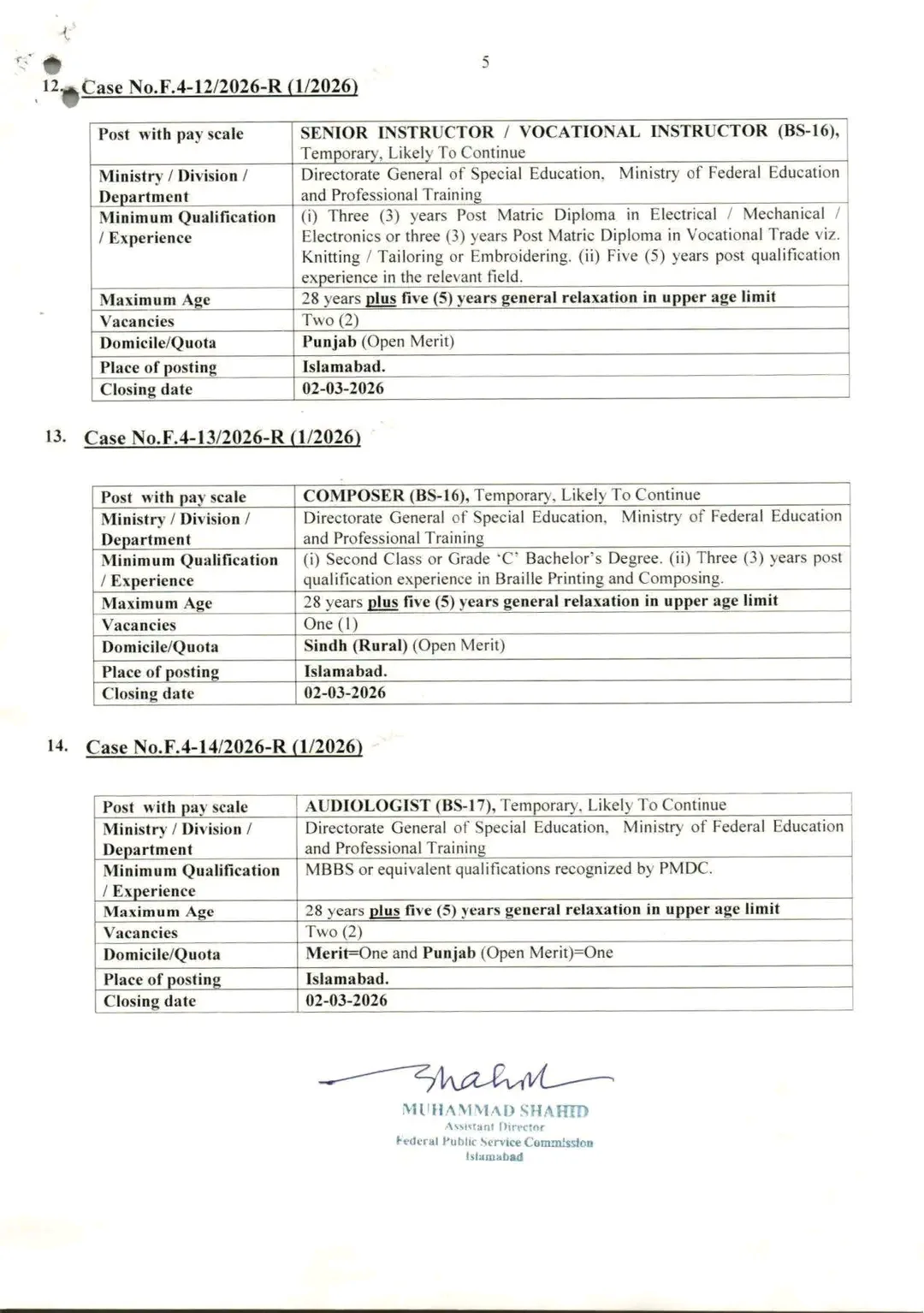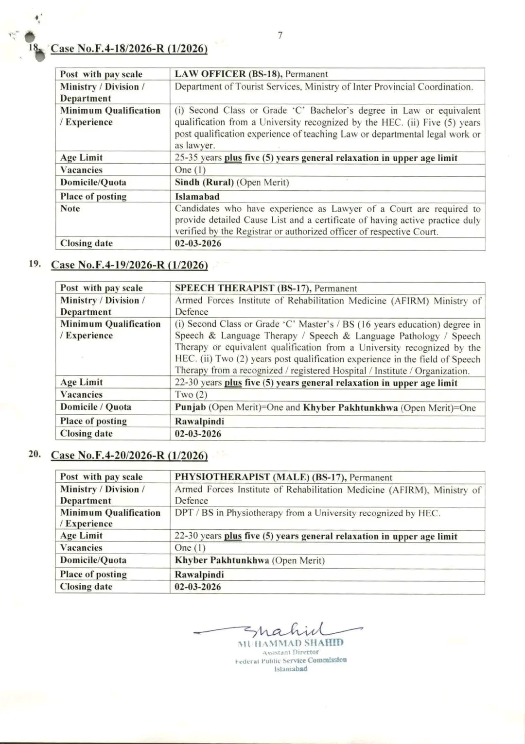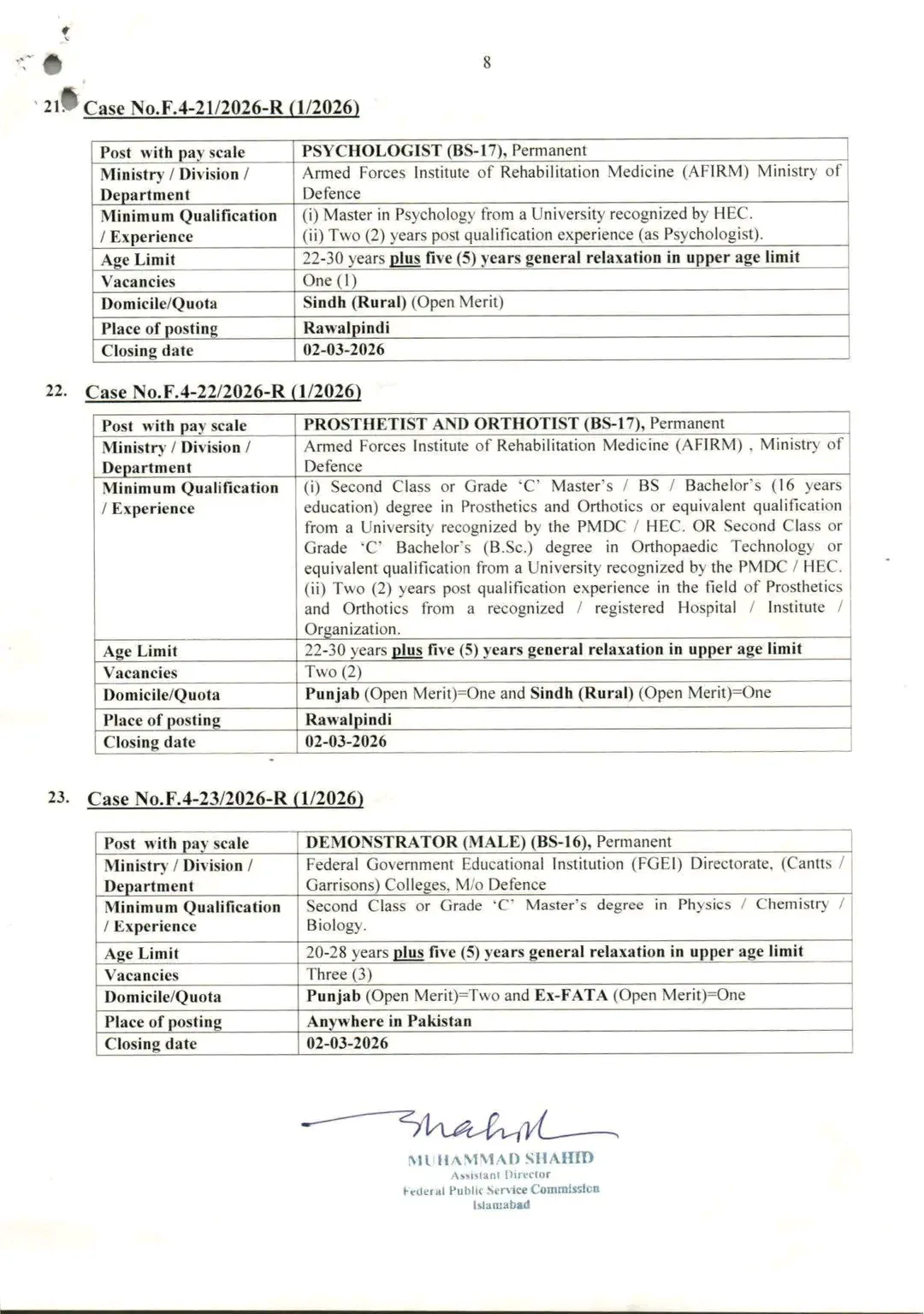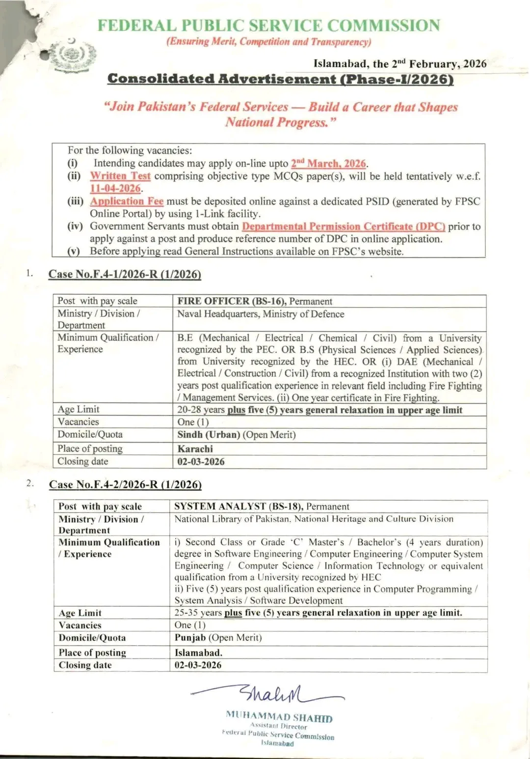 For further details and to download the full advertisement, visit the official Federal Public Service Commission Islamabad website.