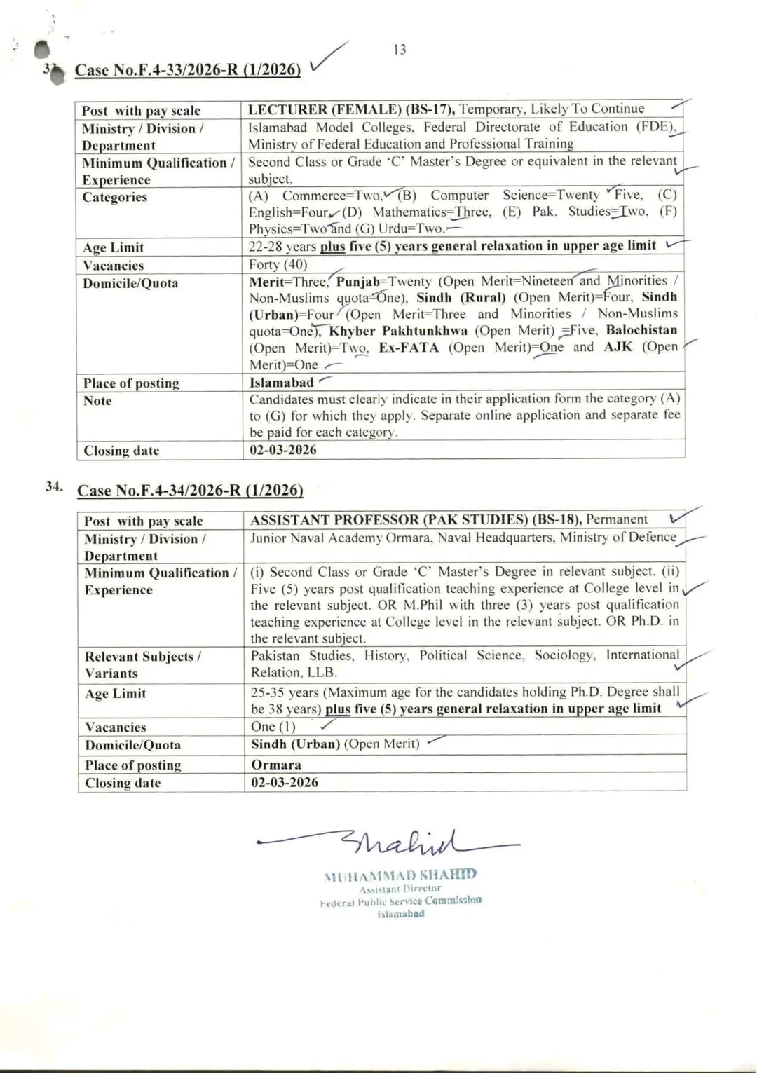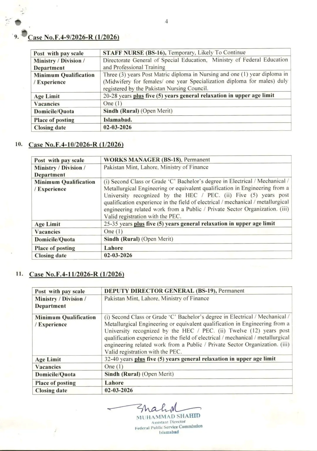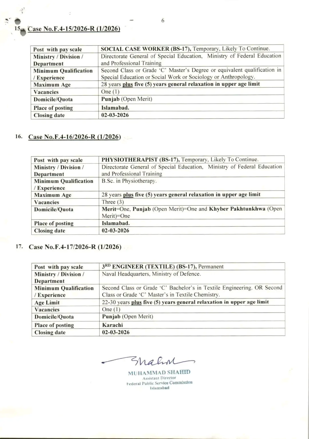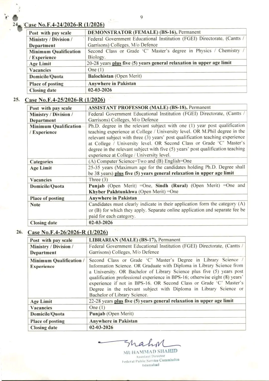 For further details and to download the full advertisement, visit the official Federal Public Service Commission Islamabad website.