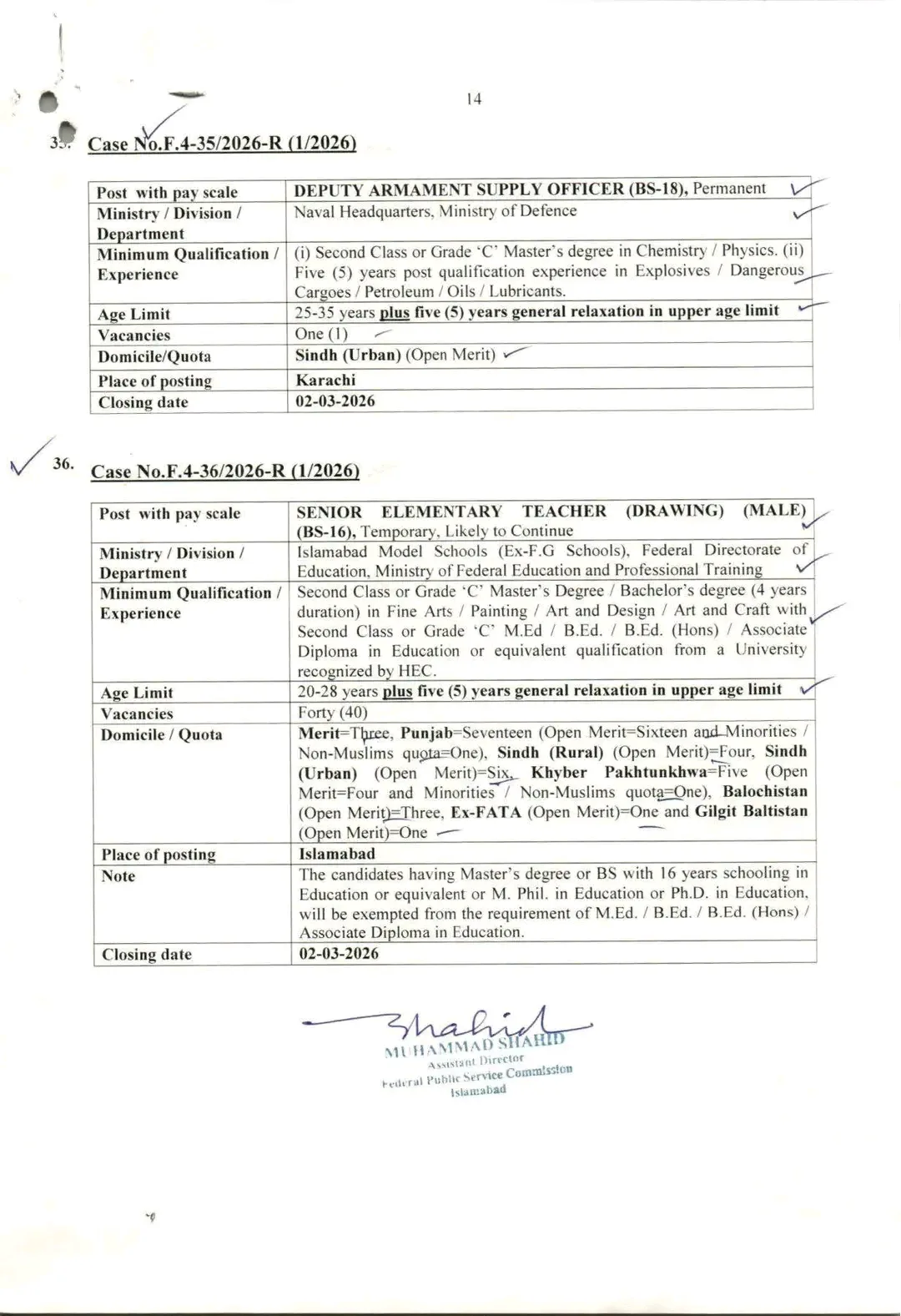• Deputy Armament Supply Officer (BS-18): Permanent post at Naval Headquarters for Chemistry/Physics graduates with explosives experience.