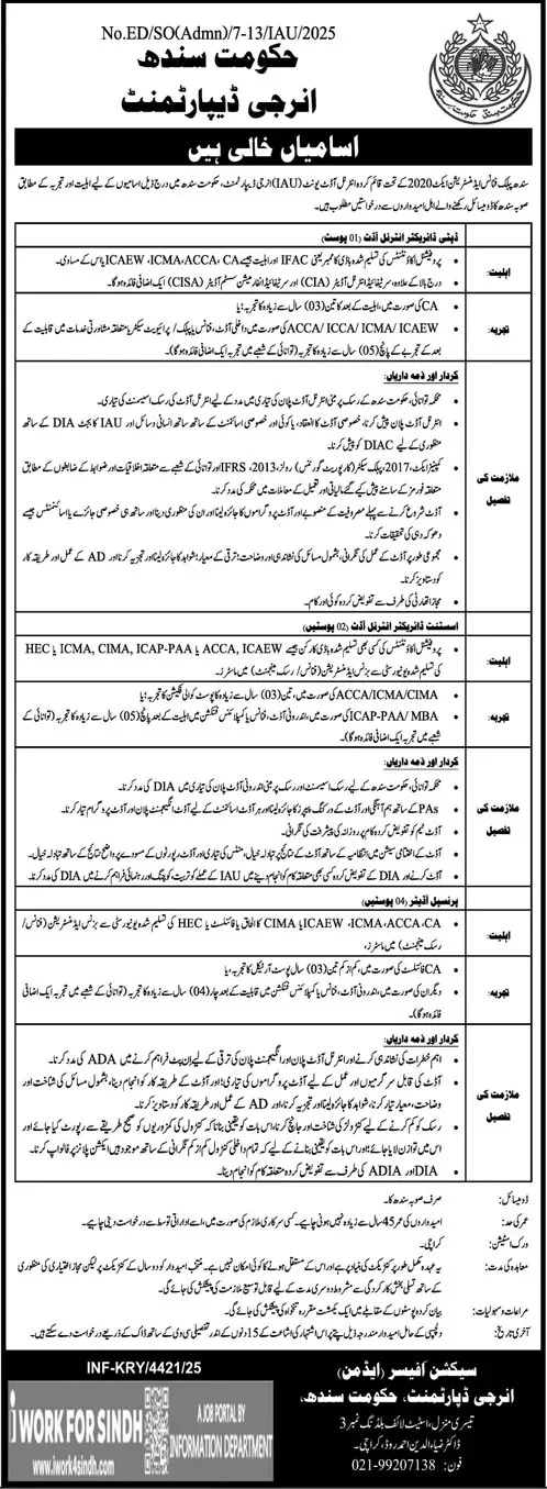 Government of Sindh Energy Department Jobs 2026, Energy Department Sindh Jobs, Internal Auditor Jobs Sindh, Assistant Director Audit Jobs, Sindh Government Jobs 2026, Audit Jobs in Pakistan, Finance Jobs Sindh