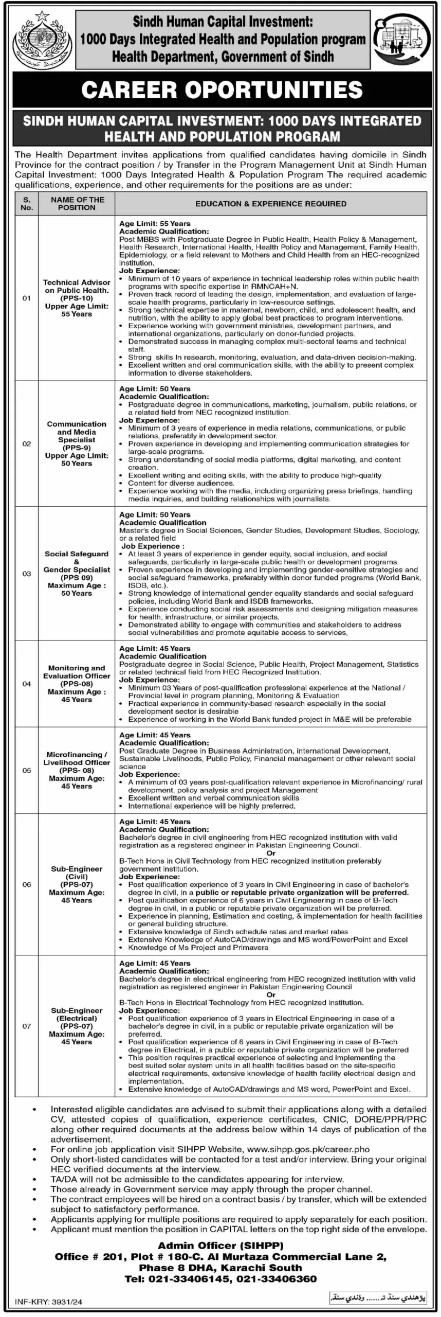 The Sindh Human Capital Investment Program is a bold step toward a healthier, more equitable future for Sindh. By offering diverse career opportunities, it invites passionate professionals to be part of this transformative journey. Together, we can build a brighter and healthier tomorrow.