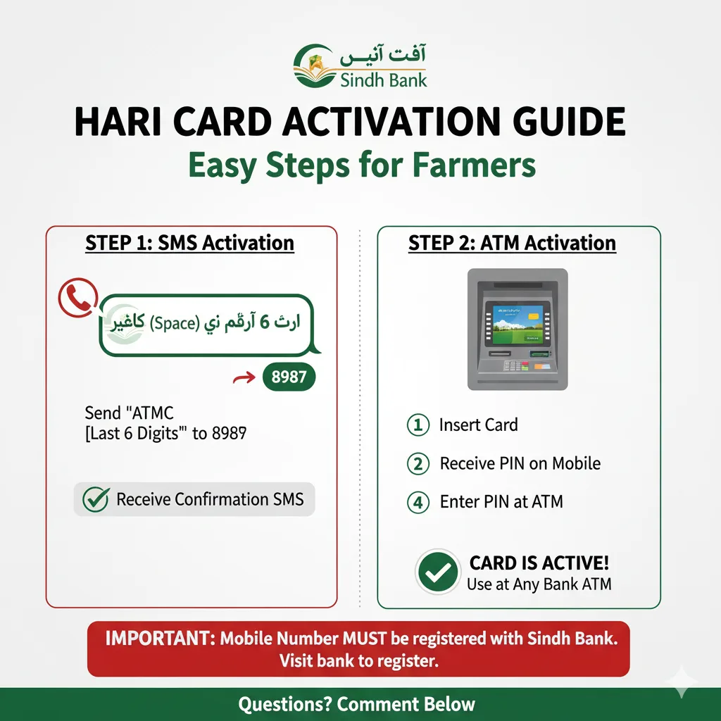 Crucial Step: If your mobile number is not registered with Sindh Bank, the Hari Card will not activate.