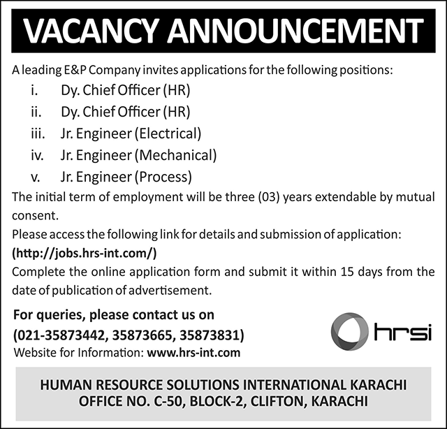 According to the advertisement, HRSI is recruiting for multiple roles for a leading Exploration and Production (E&P) company in Pakistan. Below is a detailed list of available positions: