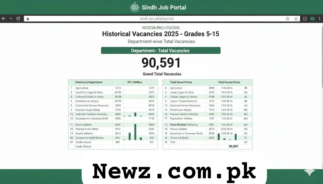 The Sindh Government has announced 90,591 vacancies for Grades 5 to 15 across 47 departments.