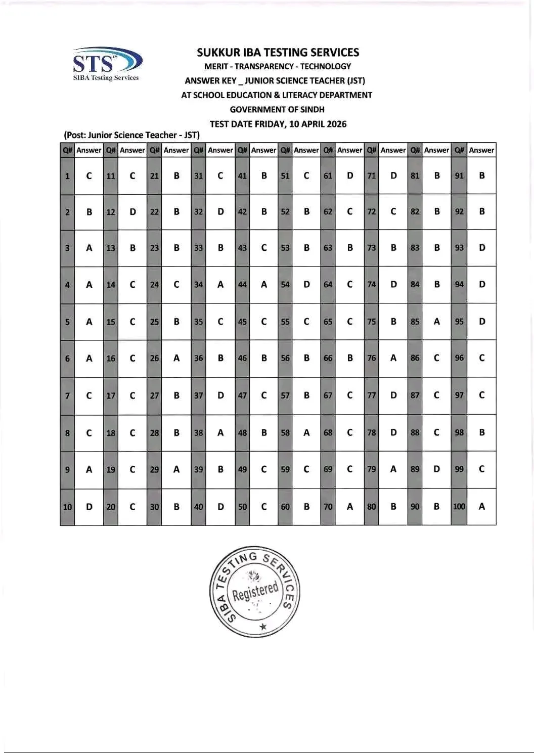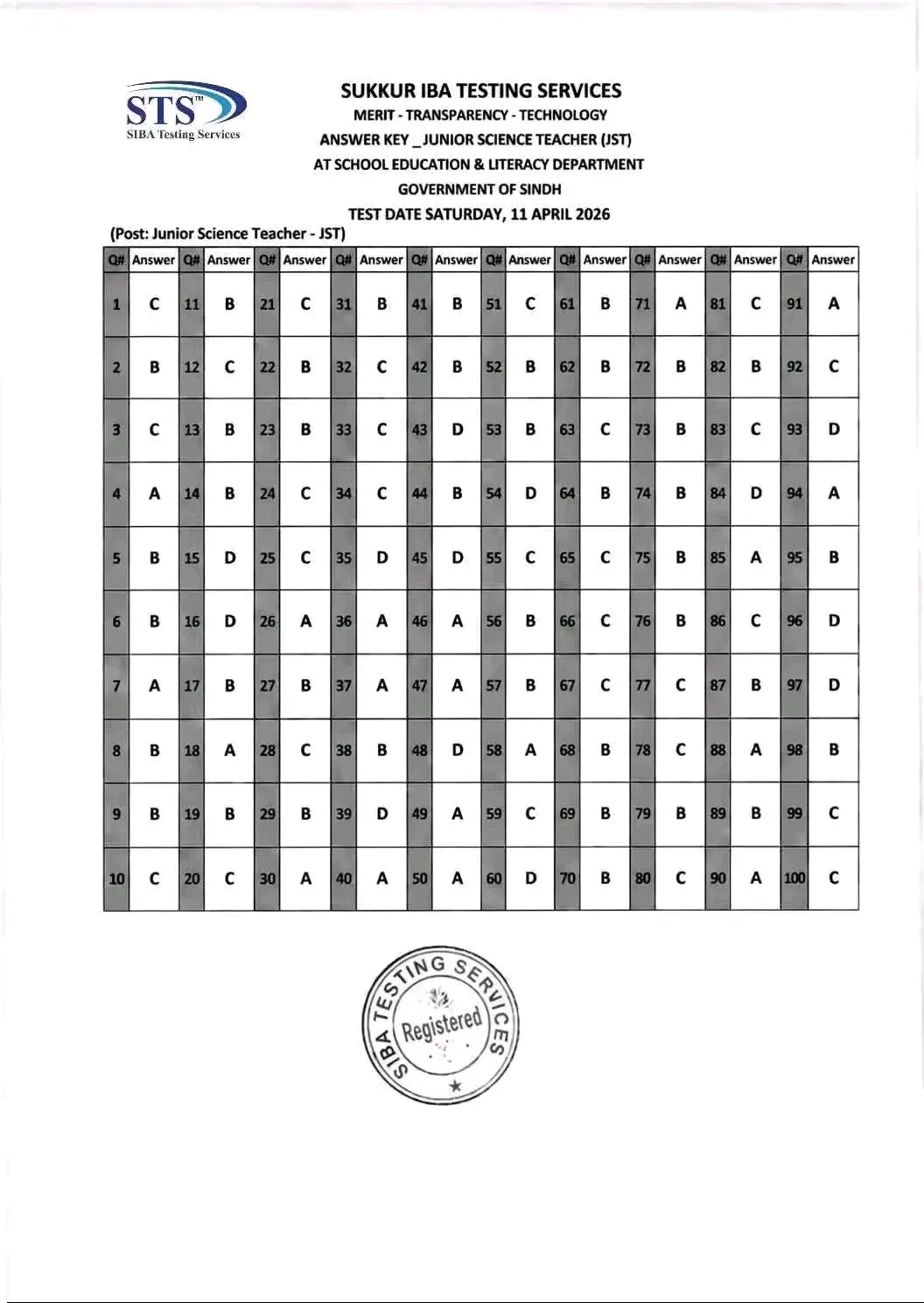 The wait is finally over for thousands of candidates across Sindh! The School Education and Literacy Department (SELD), in collaboration with Sukkur IBA Testing Services (STS), has officially released the Answer Keys for the Junior School Teacher (JST) recruitment test.