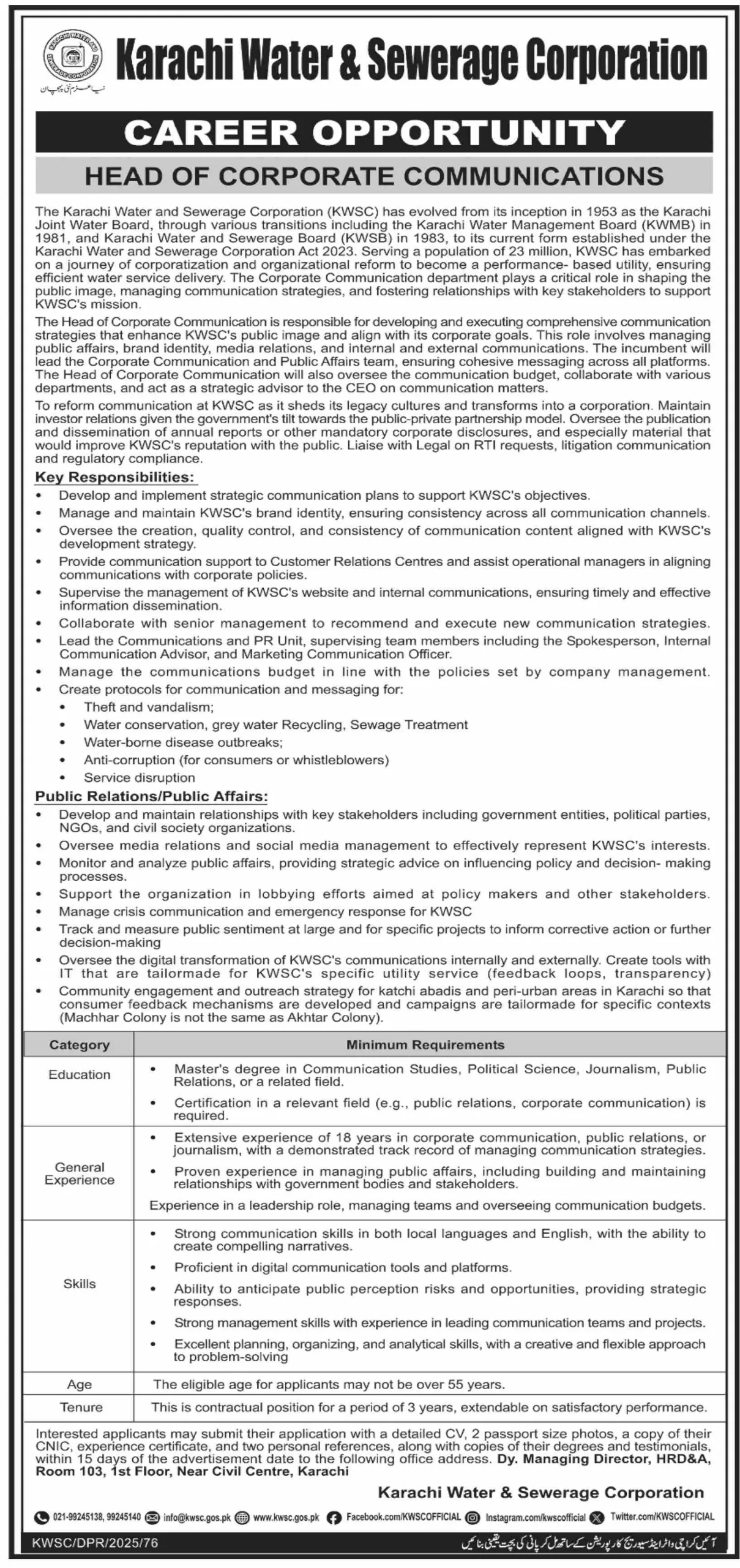 Head of Corporate Communications – Latest KW&SC Jobs 2025