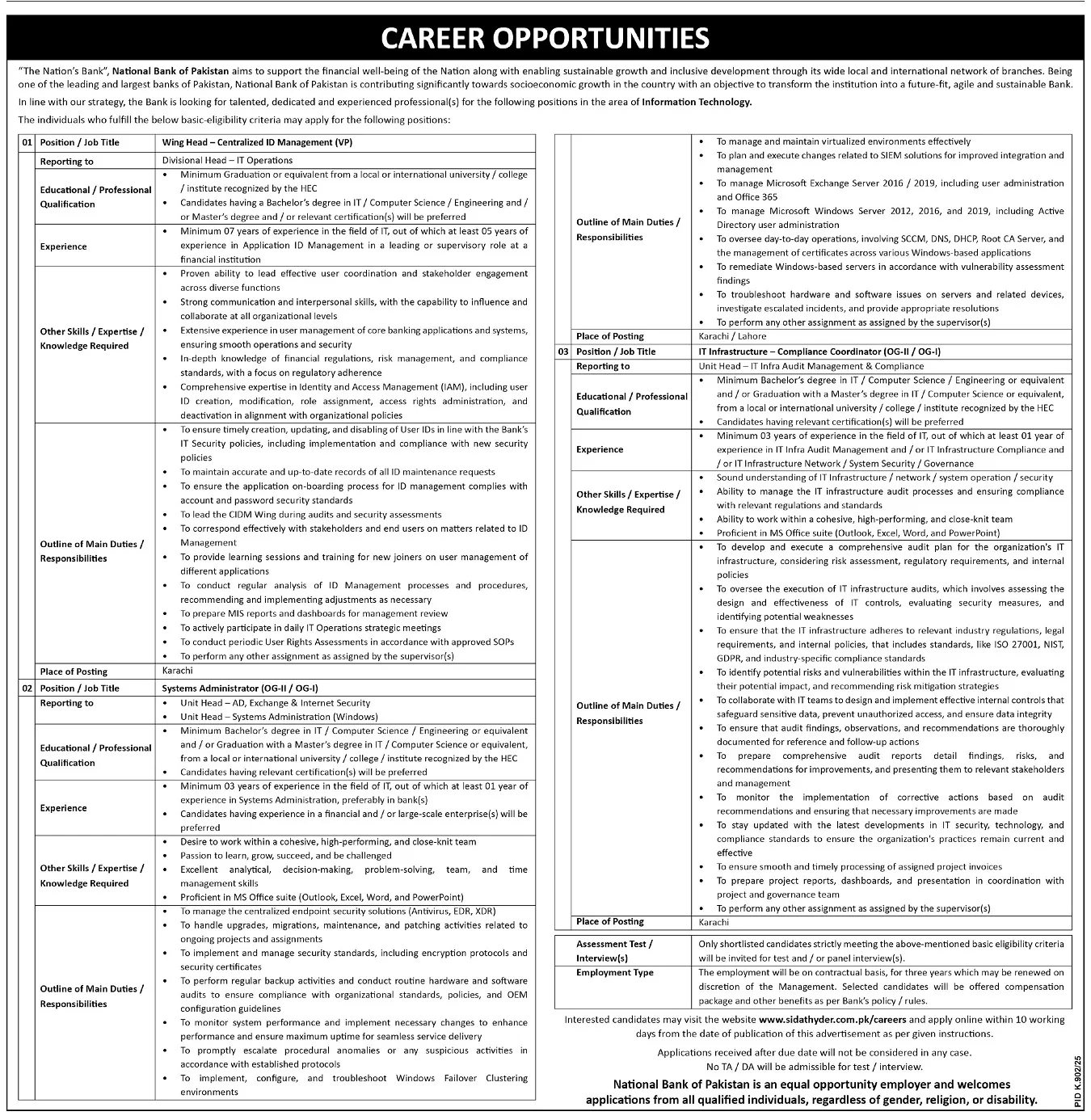 National Bank of Pakistan Jobs 2025 – Latest Career Opportunities in IT
