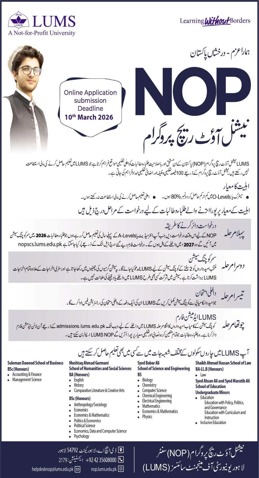 LUMS National Outreach Programme NOP 2026 – Fully Funded Education Opportunity