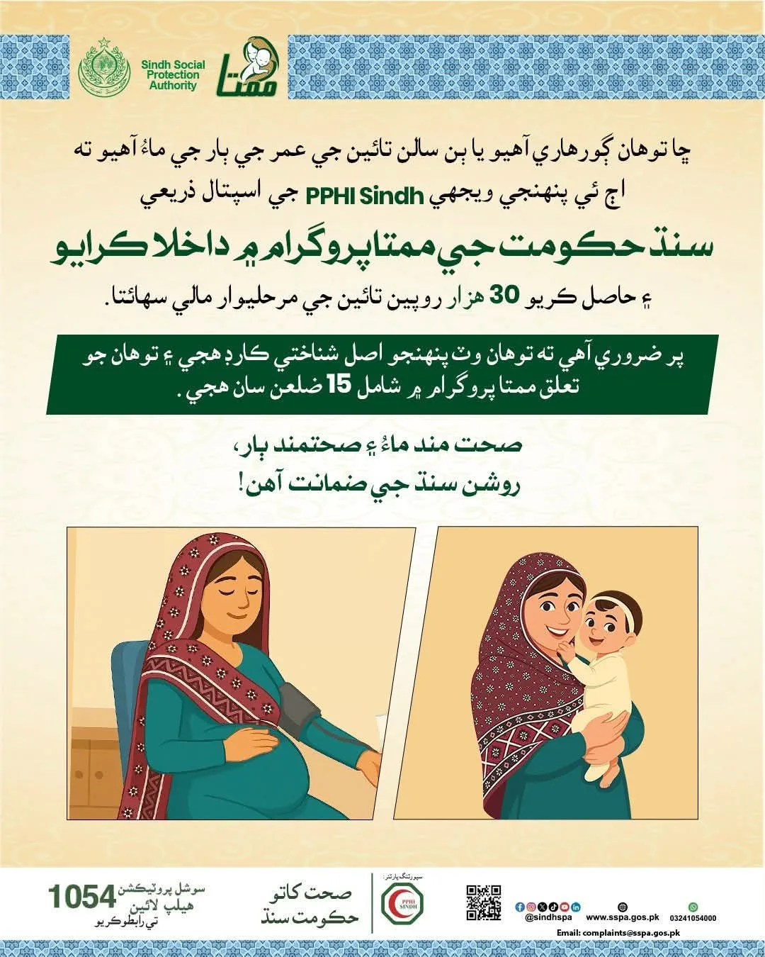 The Sindh Social Protection Authority (SSPA), in partnership with PPHI Sindh, has launched the MAMTA Program to provide crucial financial assistance and healthcare support to pregnant women and new mothers across the province.