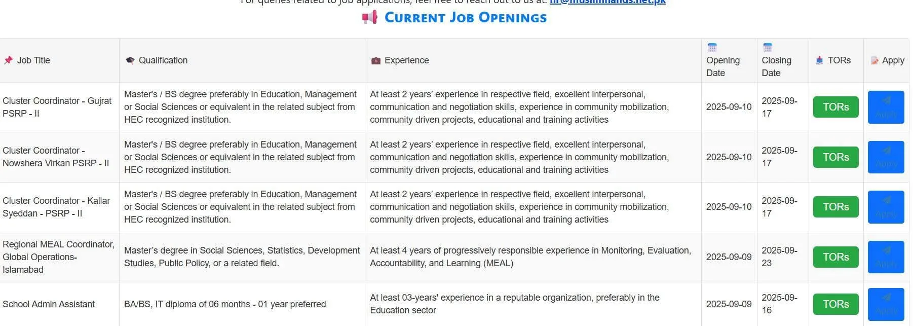 For Queries: For any questions related to job applications, you can contact the HR department at hr@muslimhands.net.pk.