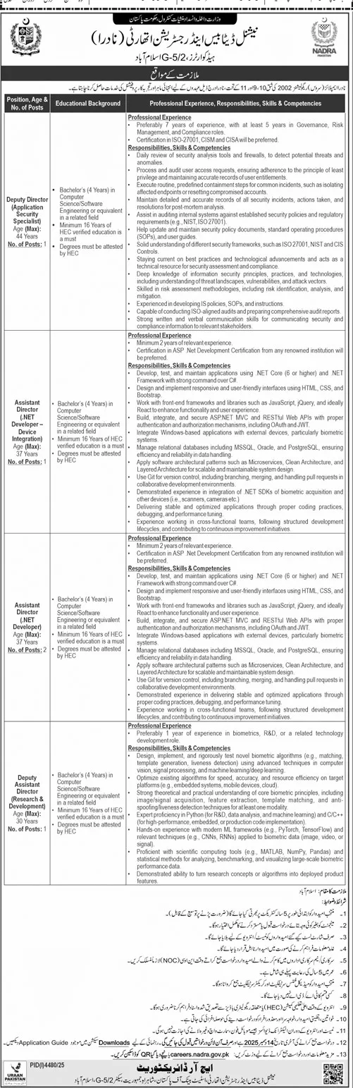 NADRA Jobs 2025 – Latest Advertisement for Deputy Director, Assistant Director & Developer Posts