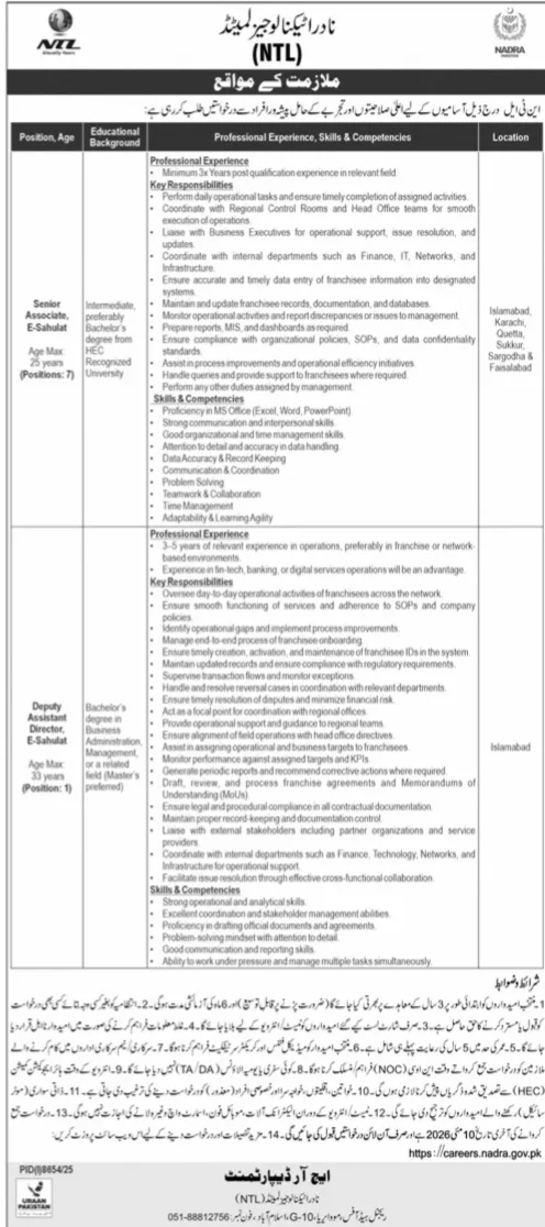 The NADRA NTL Jobs 2026 provide an excellent opportunity for both fresh graduates and experienced professionals to join a prestigious government organization. With multiple positions available and a transparent hiring process, candidates should take advantage of this opportunity.