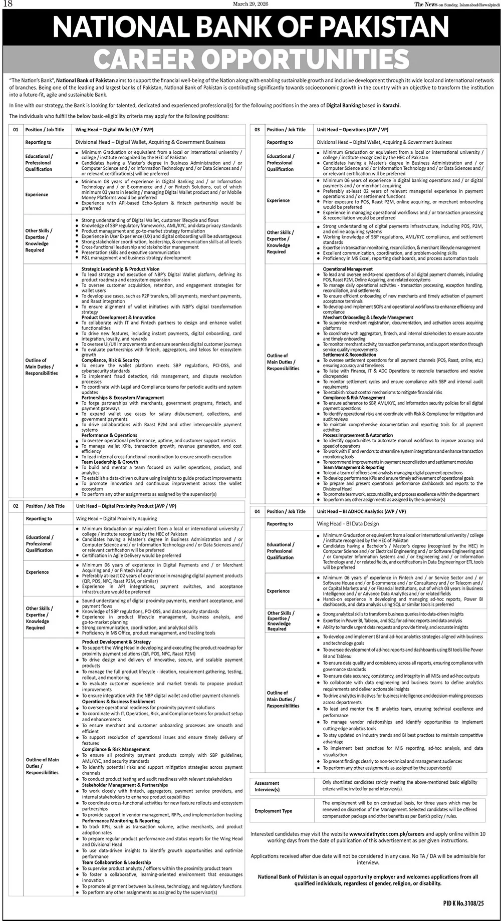 Equal Opportunity: National Bank of Pakistan is an equal opportunity employer and encourages applications from women, minorities, and persons with disabilities.