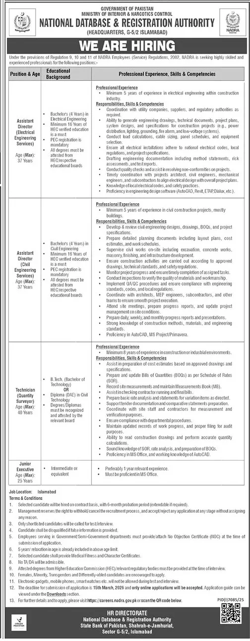 All positions are based in Islamabad, primarily at NADRA Headquarters: