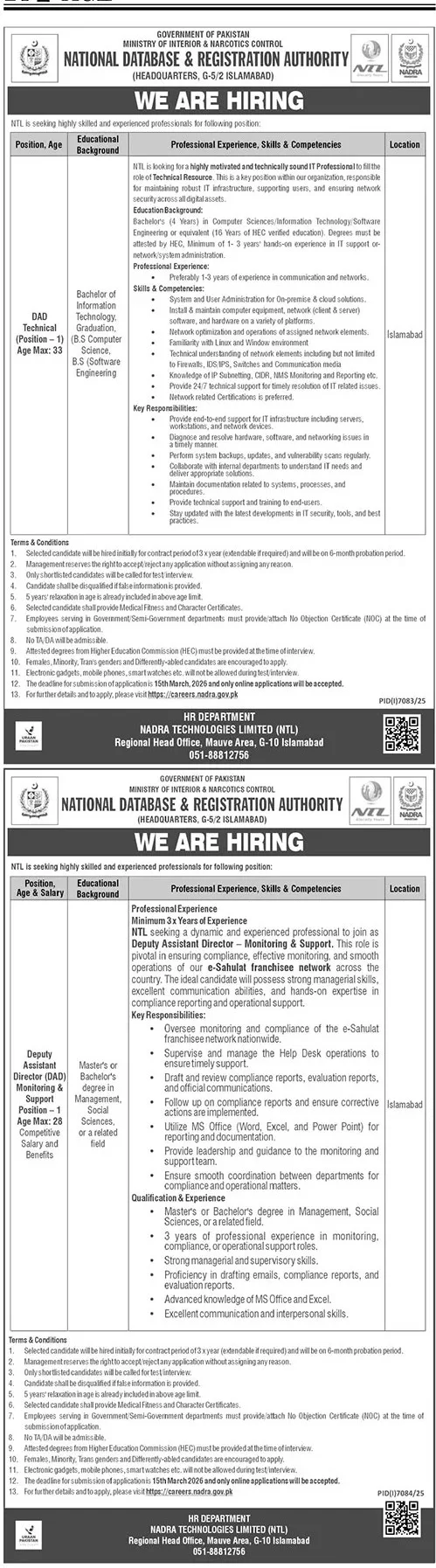National Database and Registration Authority Jobs 2026 – Apply Online for Latest NADRA & NTL Vacancies Before 15 March