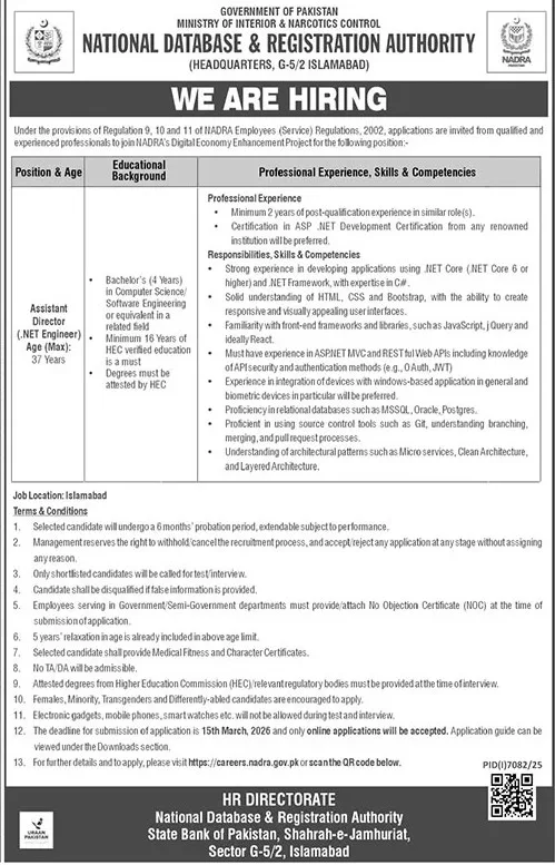 Make sure to apply before 15 March 2026 through the official NADRA careers portal. Prepare your documents, update your CV, and don’t miss this chance to secure a prestigious government job in Islamabad.