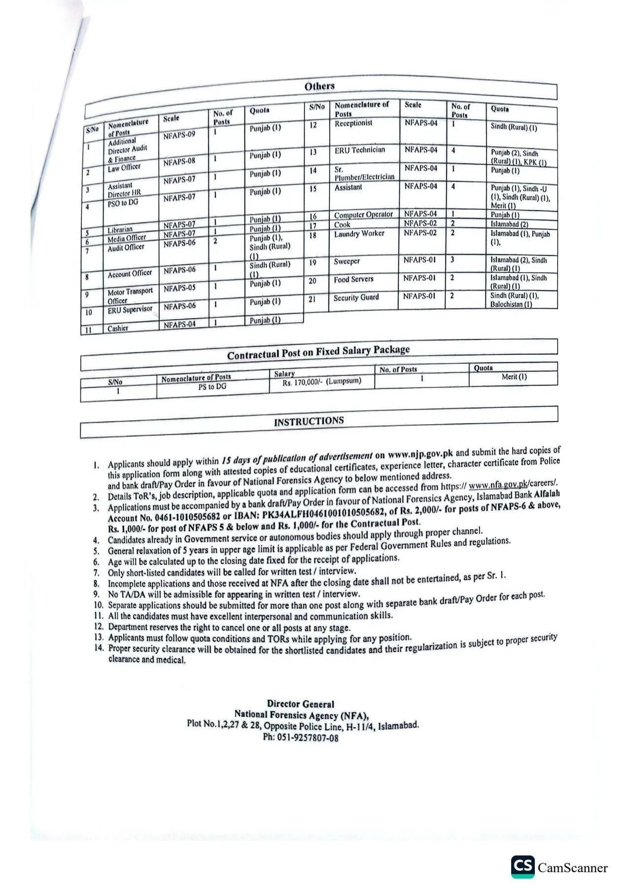 • Detailed ToRs: Specific qualifications and job descriptions for each post can be accessed at www.nfa.gov.pk/careers/.
