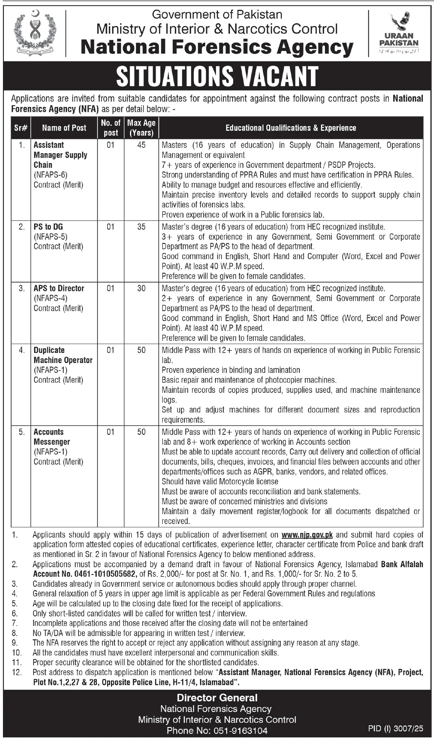 National Forensics Agency (NFA) Islamabad Jobs 2025