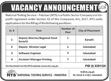 National Testing Service-Pakistan (NTS), a not-for-profit public sector company operating under Section 42 of the Companies Act, 2017, is inviting qualified and motivated professionals to join its team. Known for its pivotal role in assessment and testing services across Pakistan, NTS is now hiring for various key positions.