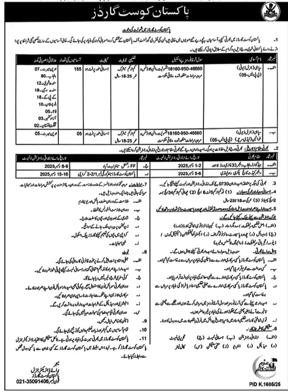 This article provides complete details about Pakistan Coast Guards Jobs 2025, including available posts, eligibility criteria, physical standards, selection process, and application deadlines.