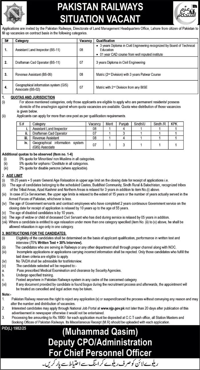 - Search for Pakistan Railways – Directorate of Land Management Jobs