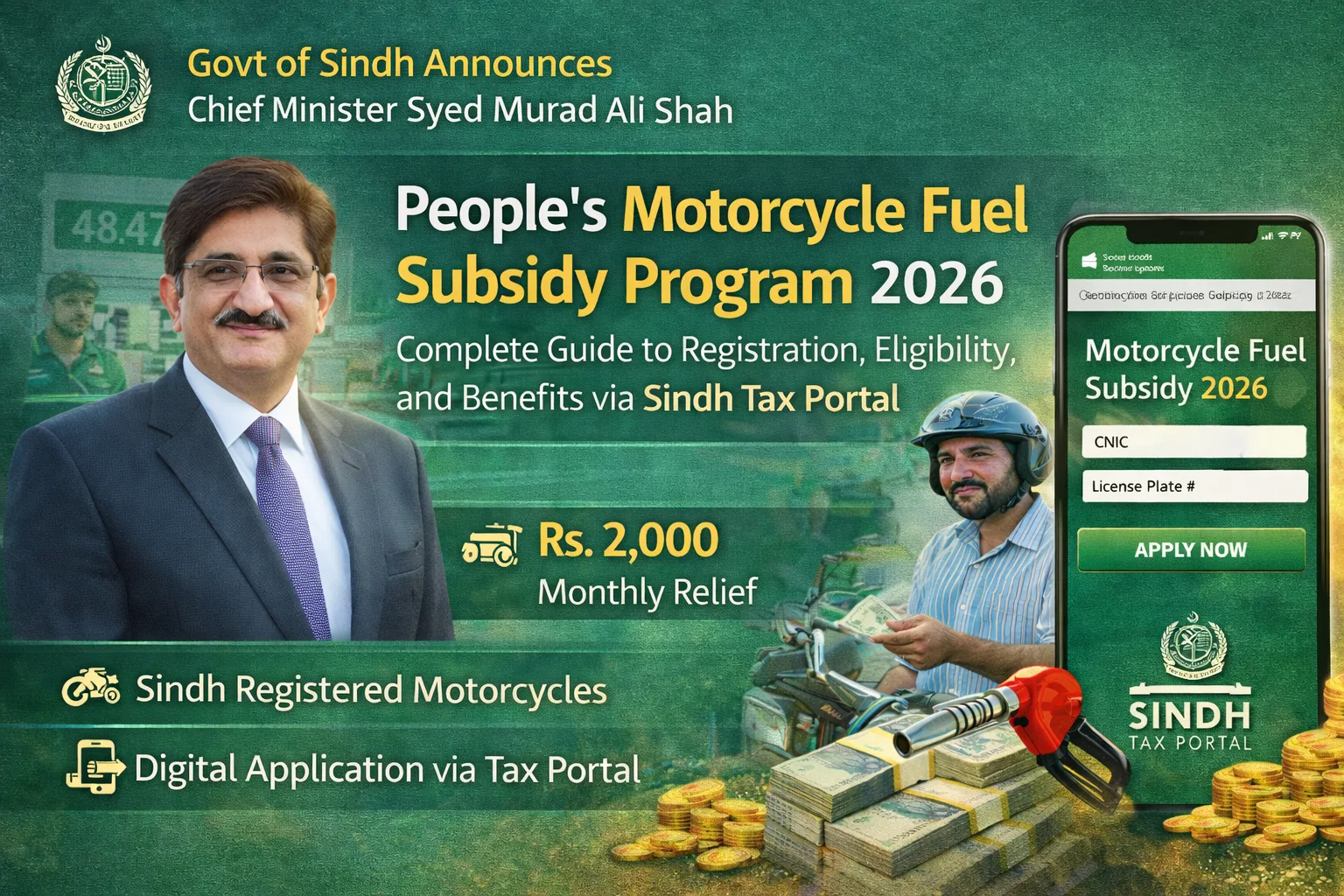Keywords: Sindh Fuel Subsidy, People’s Motorcycle Program, Excise Sindh tax portal, Fuel relief for bikes, taxportal.excise.gos.pk registration, Sindh petrol subsidy 2026, Murad Ali Shah relief package.