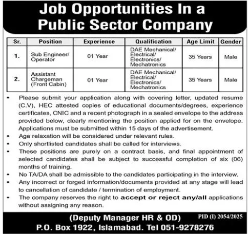 These positions are purely on contract basis, and final appointment of selected candidates is subject to successful completion of six (06) months of training.
