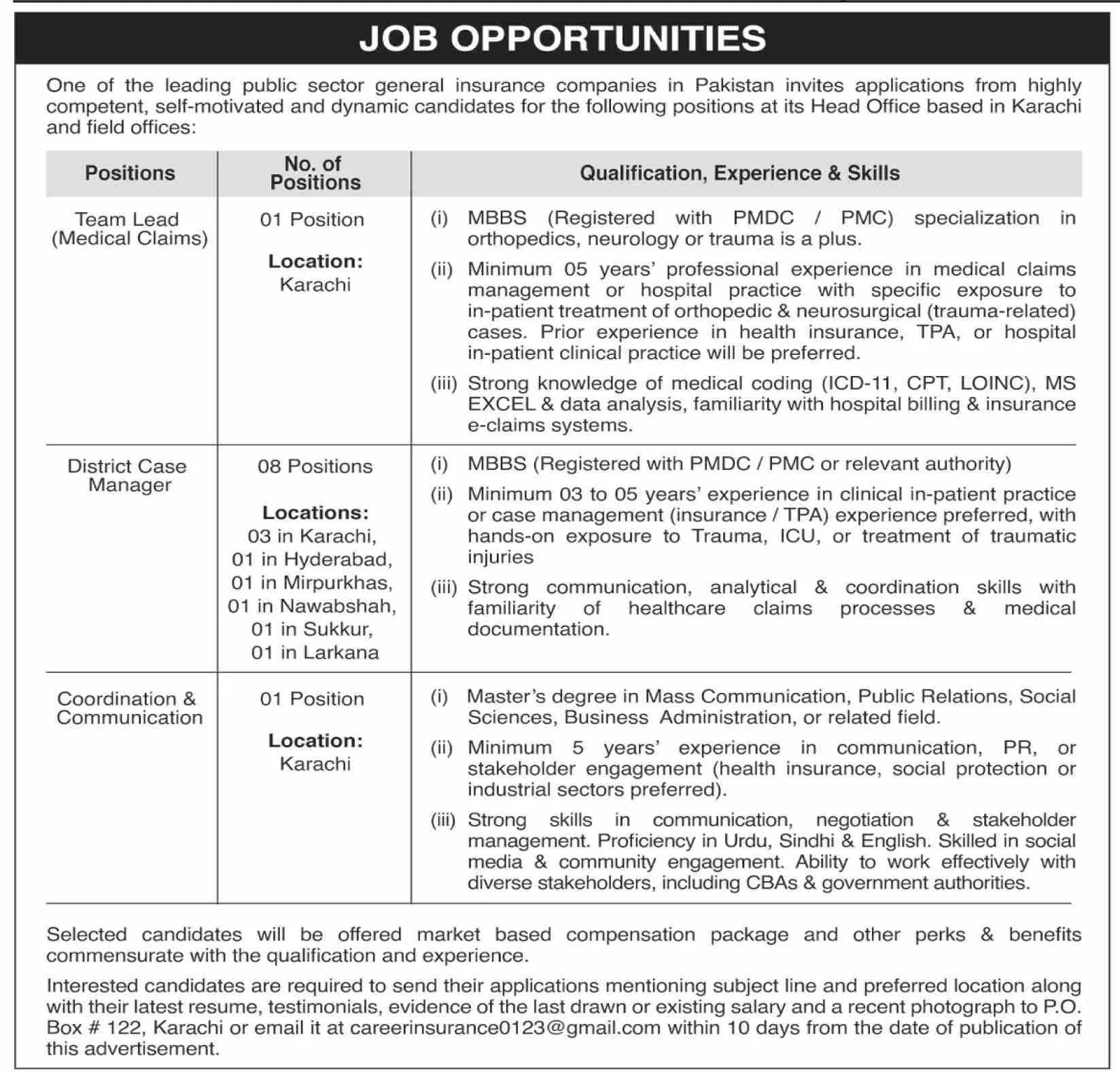 One of the leading public sector general insurance companies in Pakistan has announced fresh career opportunities in 2025 for highly competent, self-motivated, and dynamic professionals. These jobs are available at the Head Office in Karachi and multiple field offices across Sindh.