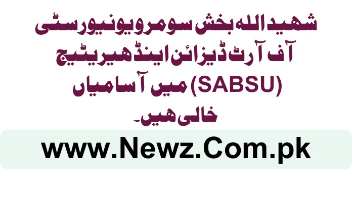 The Shaheed Allah Buksh Soomro University of Art, Design & Heritage (SABSU), Jamshoro, is inviting applications from qualified and competent candidates for non-teaching positions. The appointments will be made under a fixed-term contract.