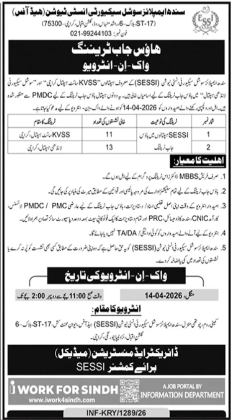 This article provides a comprehensive guide for fresh medical graduates in Sindh looking for career-starting opportunities. The Sindh Employees’ Social Security Institution (SESSI) has officially announced walk-in interviews for its 2026 House Job Training program.