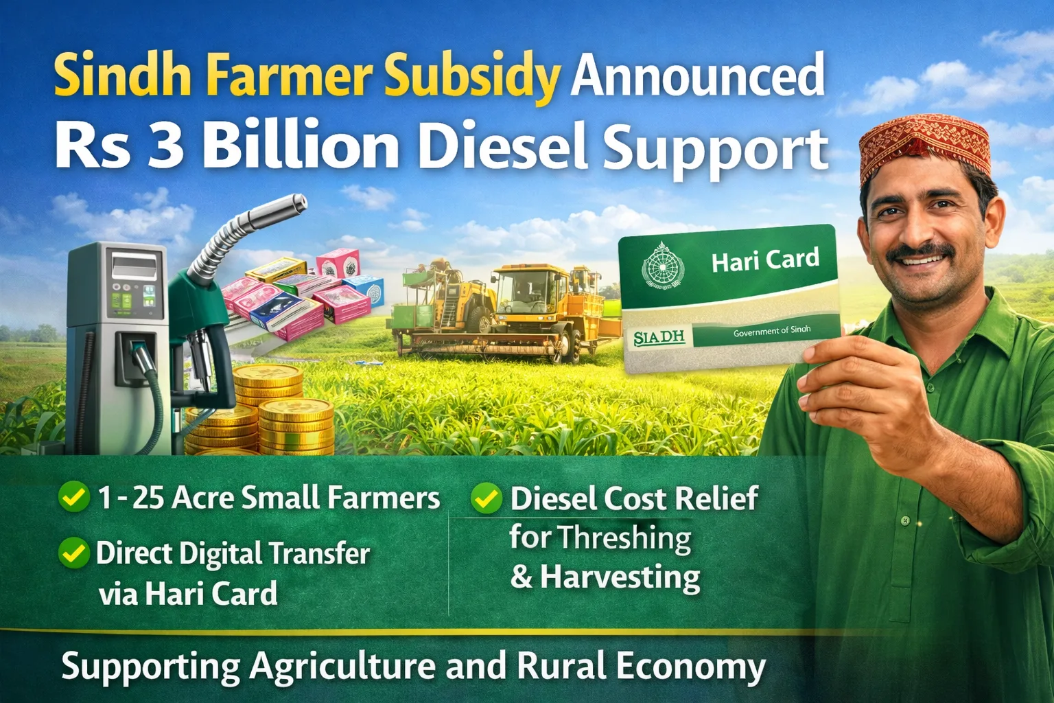 Sindh Farmer Diesel Subsidy 2026 – Rs 3 Billion Package for Small Growers (Complete Guide)