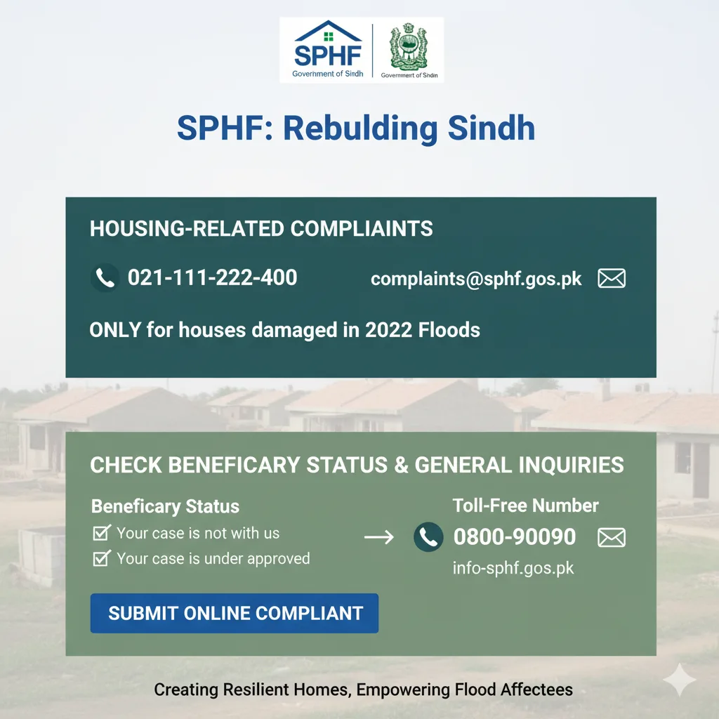 If your status shows “Your case is not with us” or if you believe your house was damaged and you need to register, utilize the provided phone number (021-111-222-400), email (complaints@sphf.gos.pk), or the online complaint submission link available on the SPHF website. This robust system is designed for digital inclusion and accessibility.