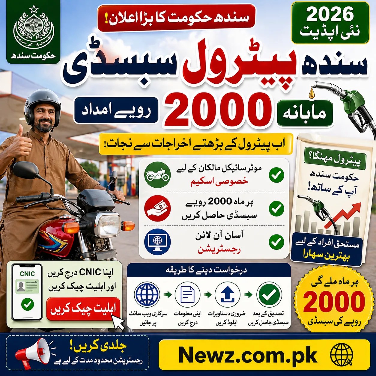 The Government of Sindh continues to provide relief to citizens through the Sindh Petrol Subsidy Programme 2026, offering Rs 2000 monthly subsidy to registered motorcycle owners.