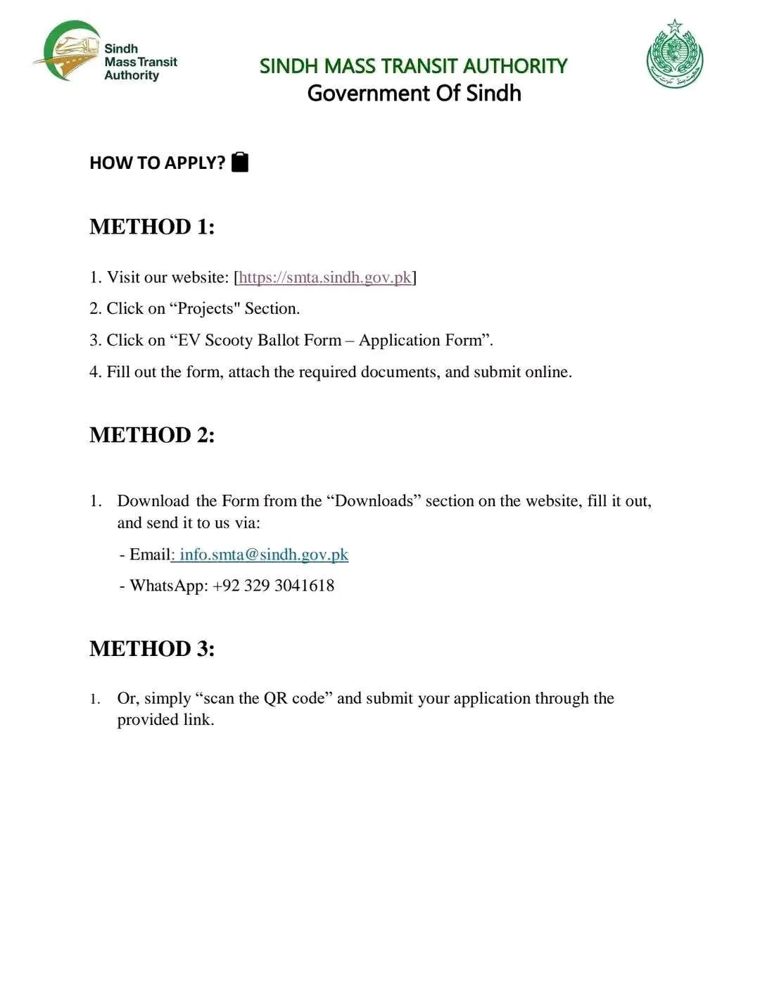 The Sindh Mass Transit Authority has provided three ways to submit your application:
