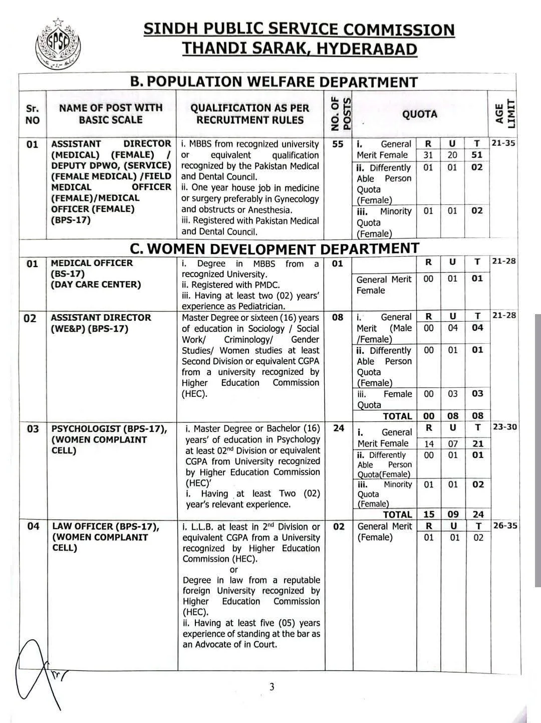 Sindh Public Service Commission (SPSC) Consolidated Advertisement No. 03/2026