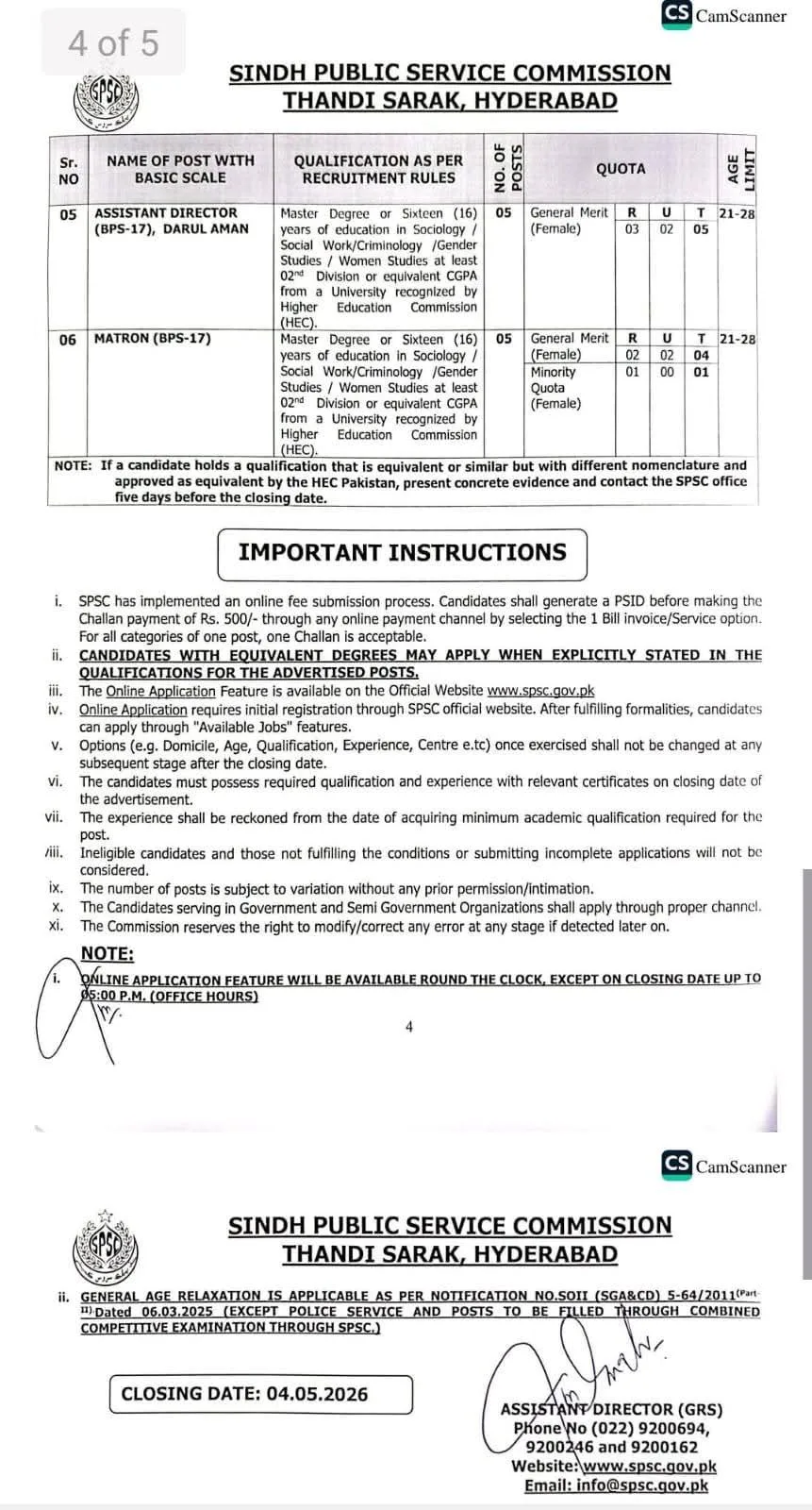 2. Online Only: Manual applications will not be entertained. Apply only through www.spsc.gov.pk.