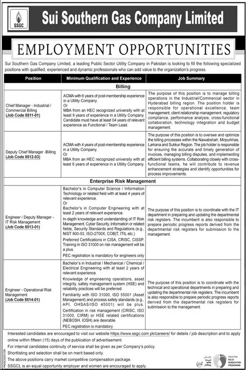👉 Apply within 15 days and secure your future with Sui Southern Gas Company Limited.